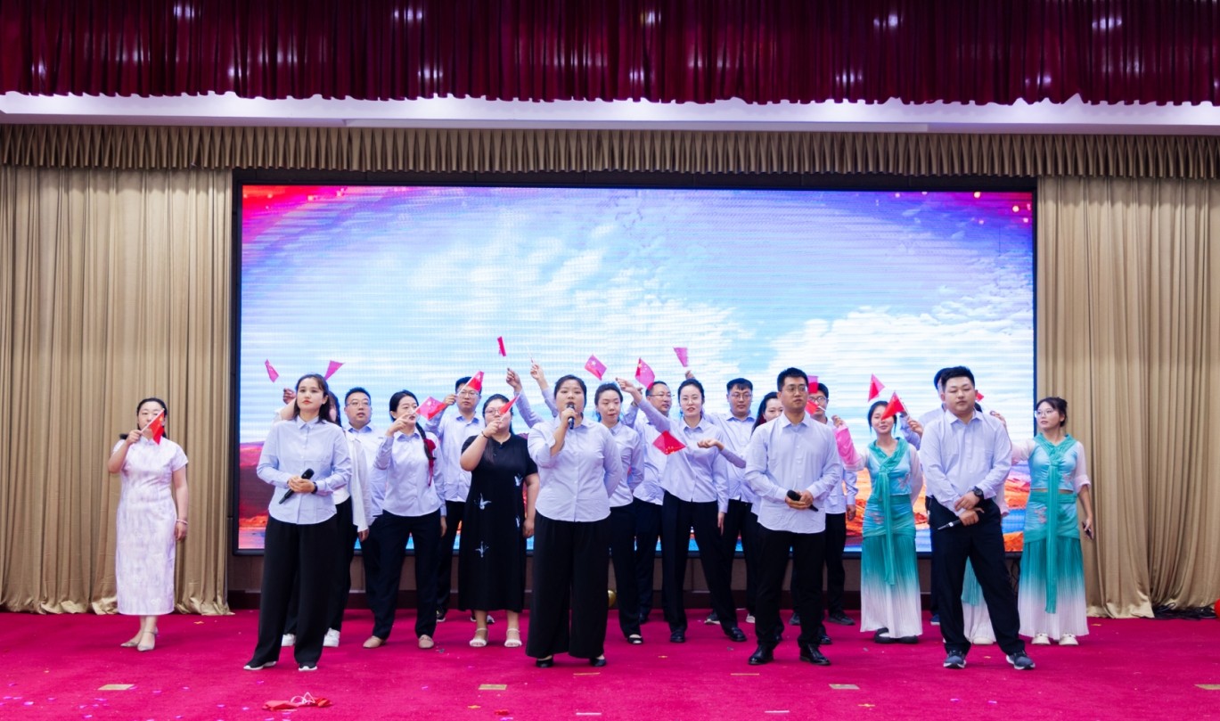 “輕輕敲醒沉睡的心靈,慢慢張開你的眼睛……”劉建強、趙志煒、劉璨、朱青手持五星紅旗上臺,全場員工自發(fā)加入合唱。歌聲中,有對過去的眷戀,更有對未來的堅定——正如歌詞所唱:“讓我們的笑容,充滿著青春的驕傲,讓我們期待著明天會更好!”